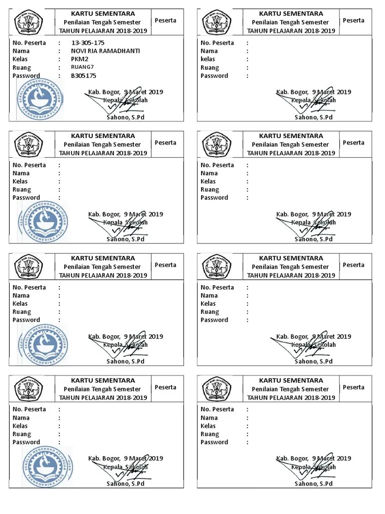 Contoh kartu pengawas ujian dan ruang kartu aplikasi contoh kartu nama. Kegiatan ulagan baik semester ganjil maupun genap atau uambn maupun uts biasanya ketika pelaksanaannya siswa dan siswi memiliki kartu peserta yang dibuatkan . Contoh aplikasi kartu ujian uas pas pat sd mts smp smk sma cariduit dot . Smp mts sma smk dan ma yang akan melaksanakan ujian usm uas pas pat ukk dll supaya. Contoh kartu ujian pts pas pat un usbn.